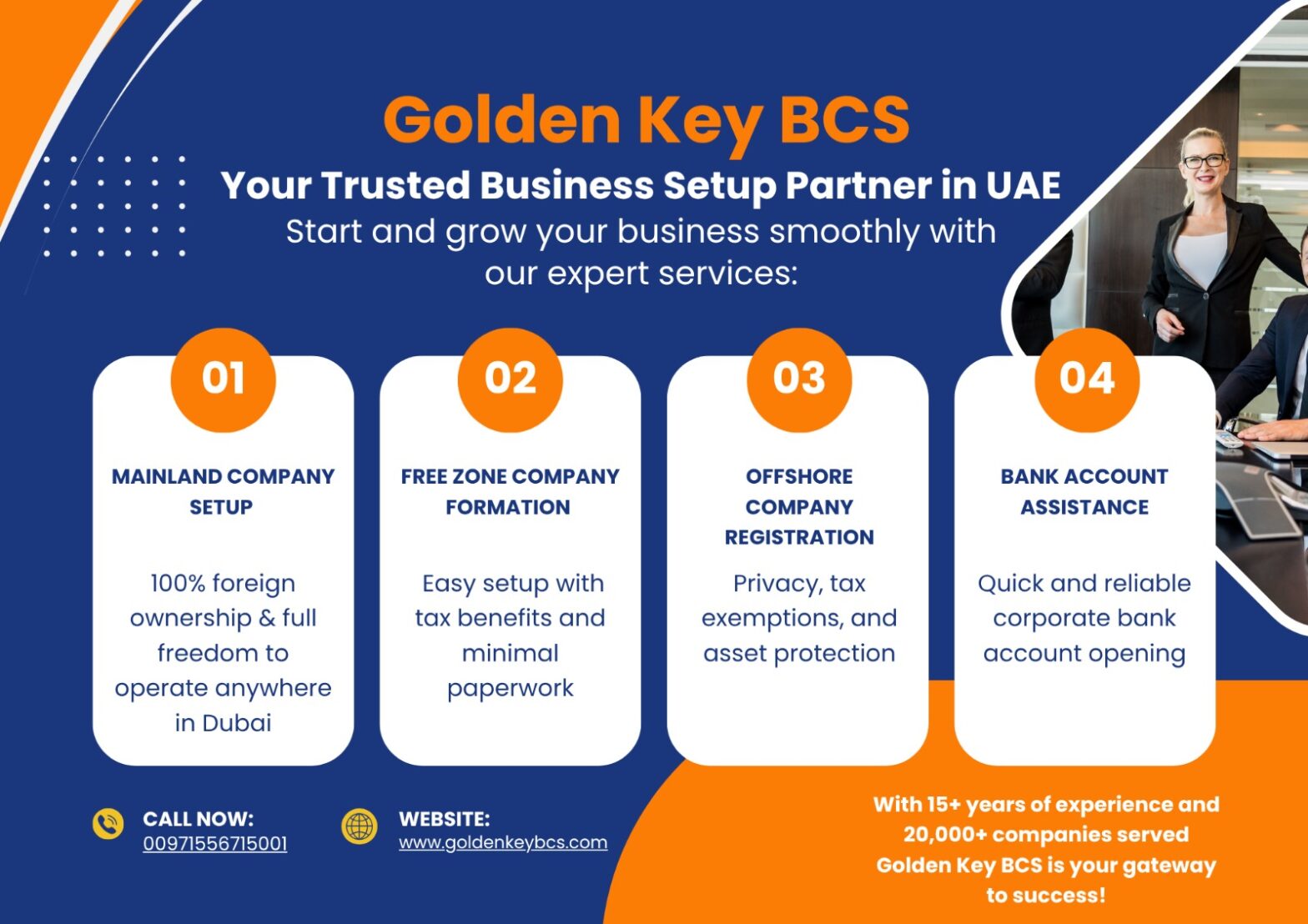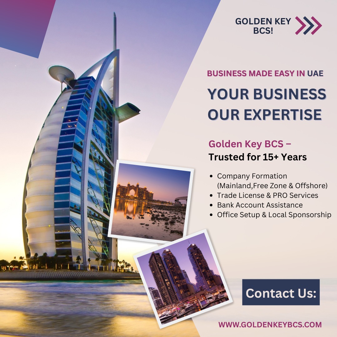 KeIntroductionGolden Key company streamlines business setup and visa processes in the UAE. Their services encompass visas, licenses, bank accounts, and company formation in freezones, offshore areas, or mainland. Key Services for Businesses Advantages of Golden Key Services ConclusionGolden Key’s expertise simplifies entering the UAE business landscape. Their services support companies and entrepreneurs.